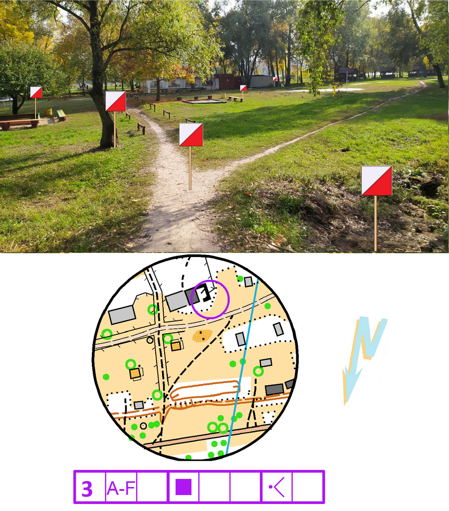 Точками локацій IV етапу змагань були обрані рекреаційні зони міста Суми. Учасники мали визначити, призма якого з контрольних пунктів, зображених на фотографії заданої локації, відповідає позначенню контрольного пункту на спортивній карті місцевості та легенді.