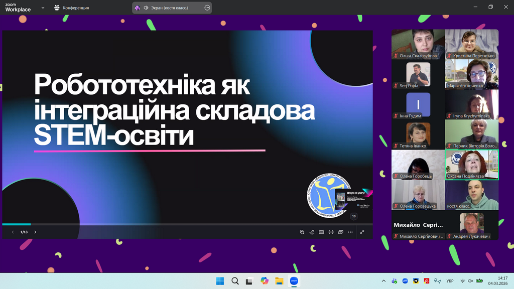 У ролі спікера від Сумського обласного центру позашкільної освіти та роботи з талановитою молоддю виступив керівник гуртка «Robo fusion» Яценко Костянтин Сергійович, який презентував власний практичний досвід роботи з теми «Робототехніка як інтеграційна складова STEM-освіти».