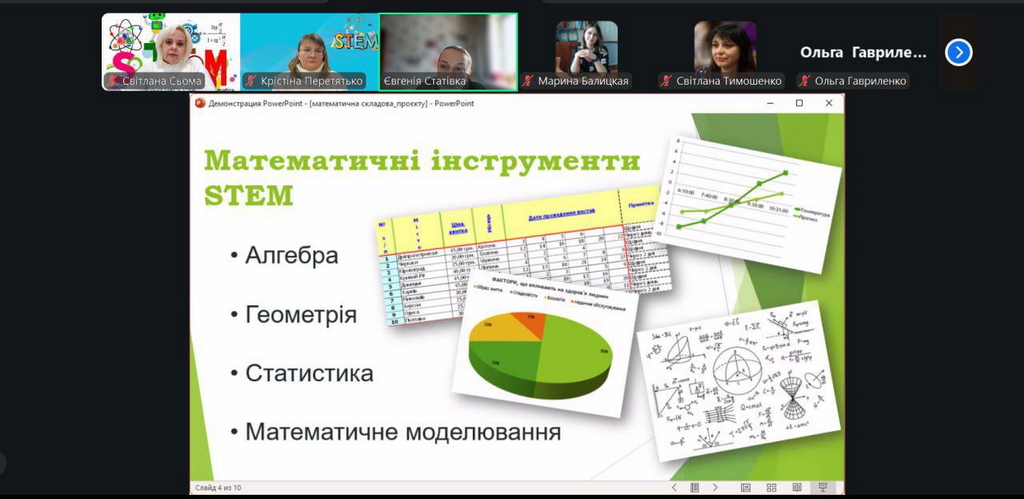 Окрім того, учасники активно долучилися до обговорення ідей міждисциплінарних проєктів, у яких математика органічно поєднується з інформатикою, природничими науками, інженерією та робототехнікою, а також ознайомилися з ефективними підходами до їх практичного впровадження в STEM-освітній процес з урахуванням вікових та пізнавальних особливостей здобувачів освіти.