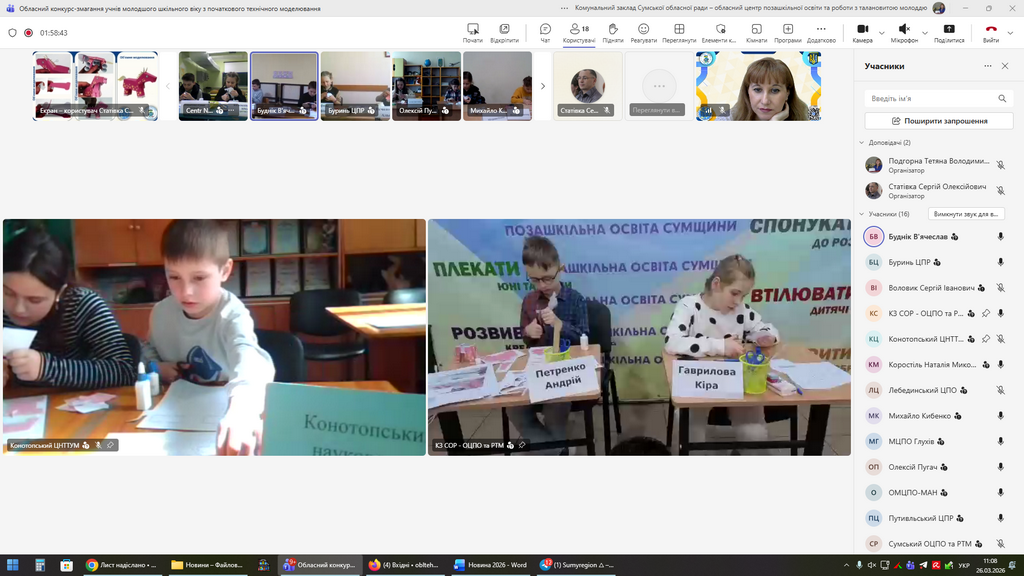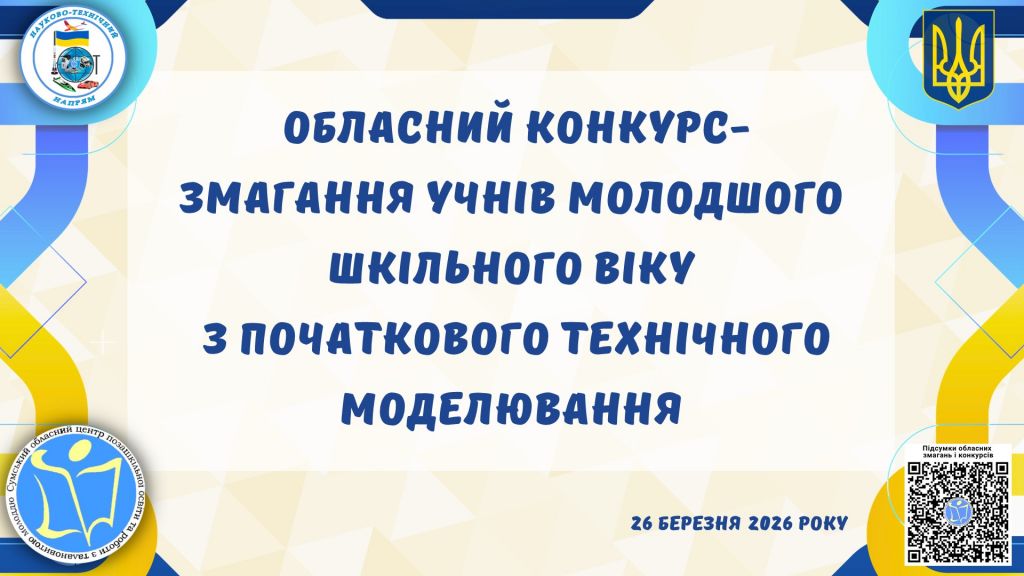26 березня 2026 року відбувся обласний конкурс змагання учнів молодшого шкільного віку з початкового технічного моделювання в онлайн форматі.