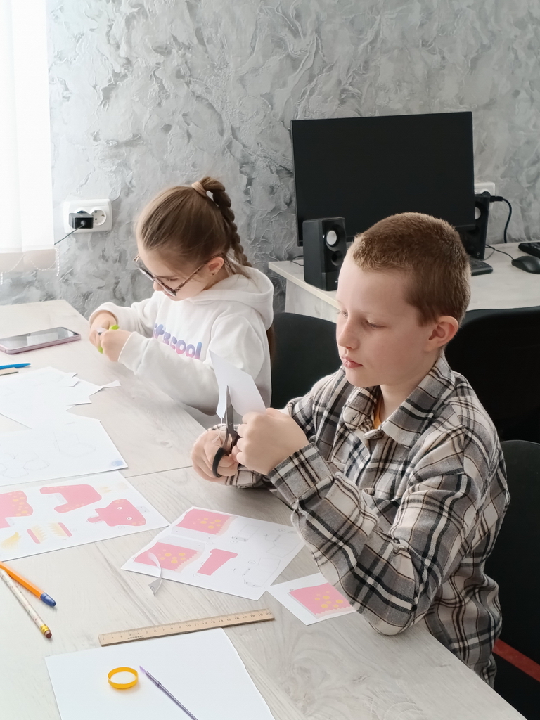 Перша група працювала над практичним завданням, що передбачало виготовлення простих геометричних фігур. Під час роботи діти демонстрували володіння інструментами, уміння дотримуватися технологічної послідовності та точність у виконанні кожного елементу геометричного конструктора.
