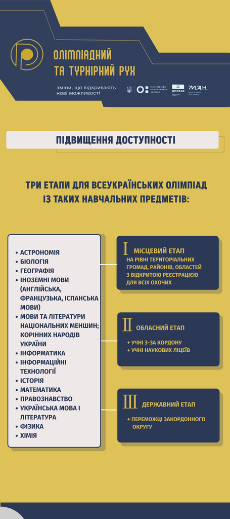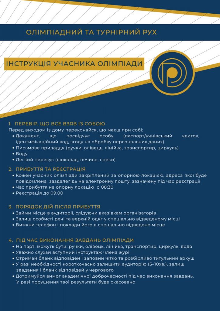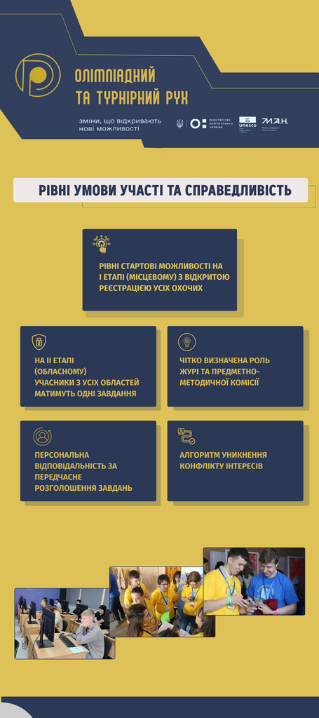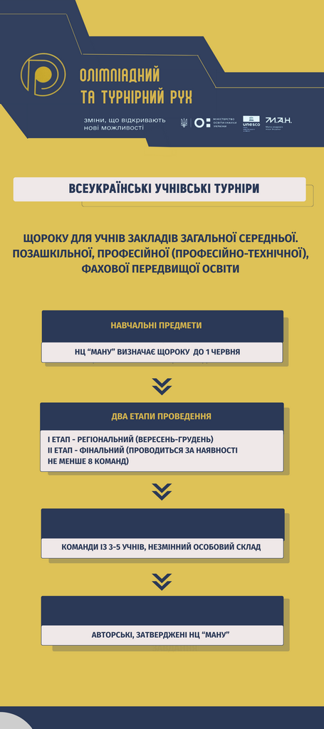 Олімпіадний та турнірний рух є важливим складником системи роботи з інтелектуально обдарованою учнівською молоддю. Участь в інтелектуальних змаганнях сприяє підвищенню рівня освіти здобувачів освіти, формує навички командної взаємодії, критичного мислення, пошуку нестандартних рішень.