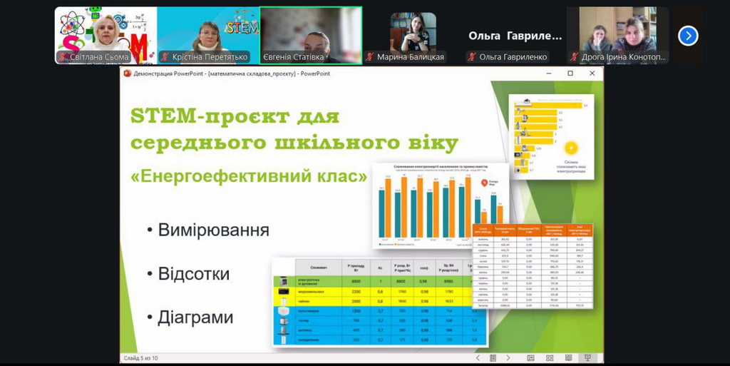 Окрім того, учасники активно долучилися до обговорення ідей міждисциплінарних проєктів, у яких математика органічно поєднується з інформатикою, природничими науками, інженерією та робототехнікою, а також ознайомилися з ефективними підходами до їх практичного впровадження в STEM-освітній процес з урахуванням вікових та пізнавальних особливостей здобувачів освіти.