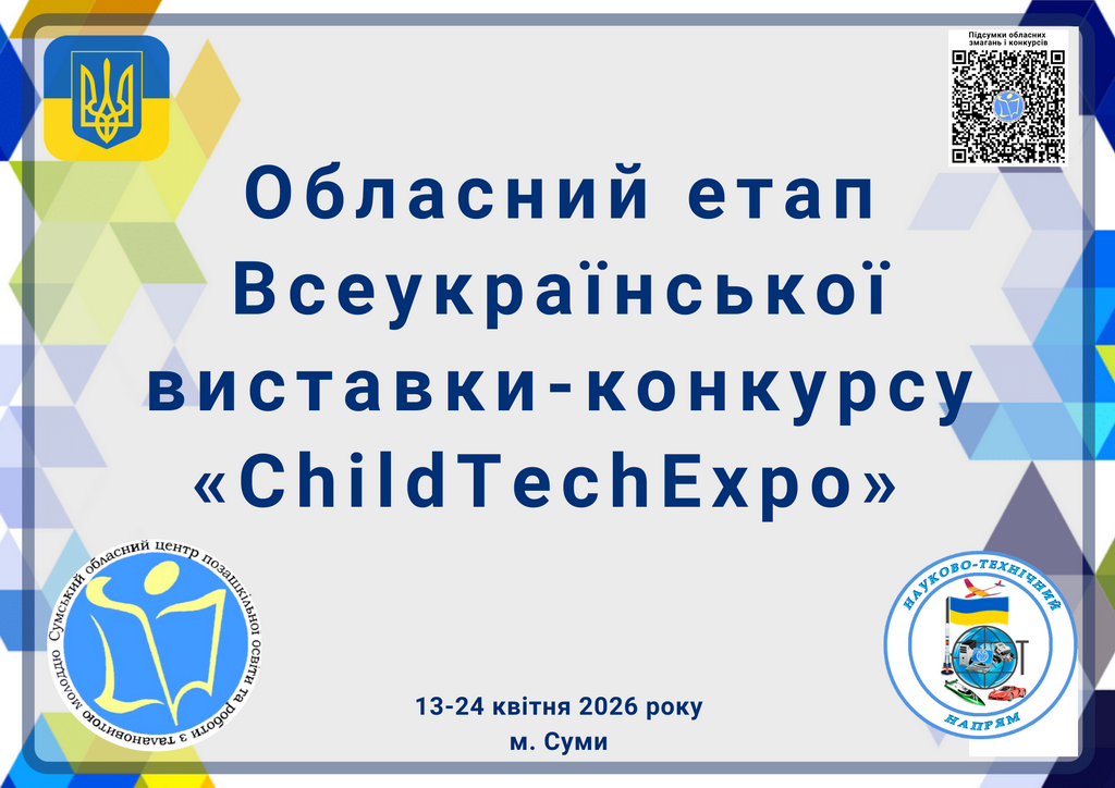 У квітні відбувся обласний етап виставки-конкурсу «ChildTechEхpo», який цього року проходив у заочному форматі. Організатором заходу традиційно виступив комунальний заклад Сумської обласної ради – обласний центр позашкільної освіти та роботи з талановитою молоддю.