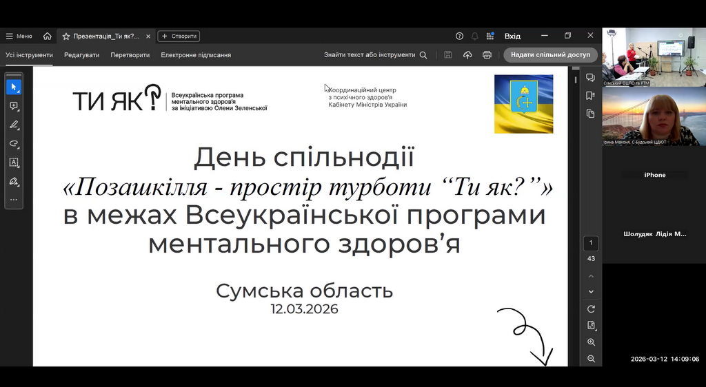 12 березня 2026 року на базі комунального закладу Сумської обласної ради – обласного центру позашкільної освіти та роботи з талановитою молоддю відбулися заходи в межах Дня спільнодії Всеукраїнської програма ментального здоров’я «Ти як?».