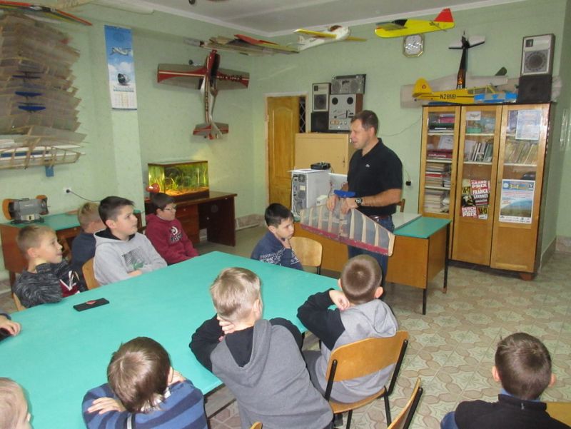 Литвиненко Володимир Павлович ознайомив дітей з роботою авіамодельного гуртка. Дітям було цікаво побачити діючі моделі планерів.